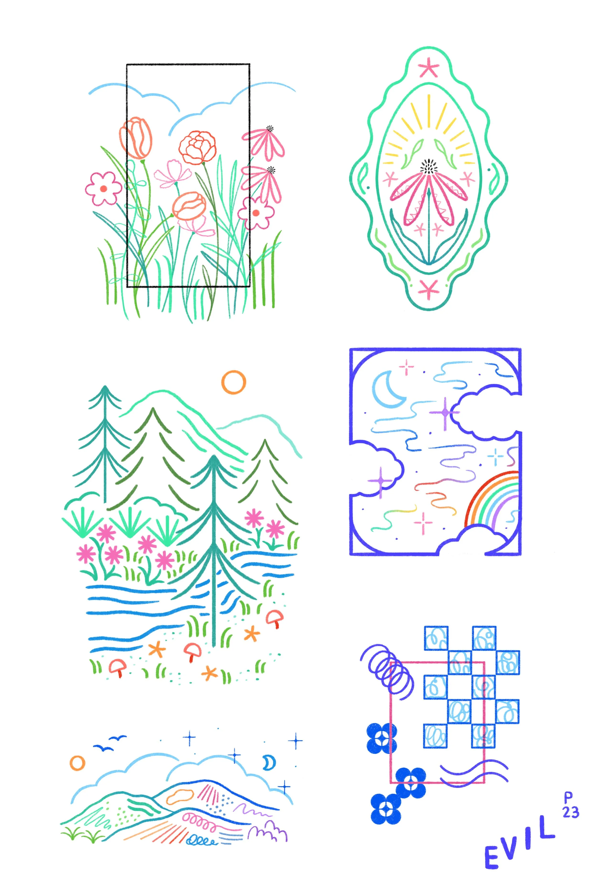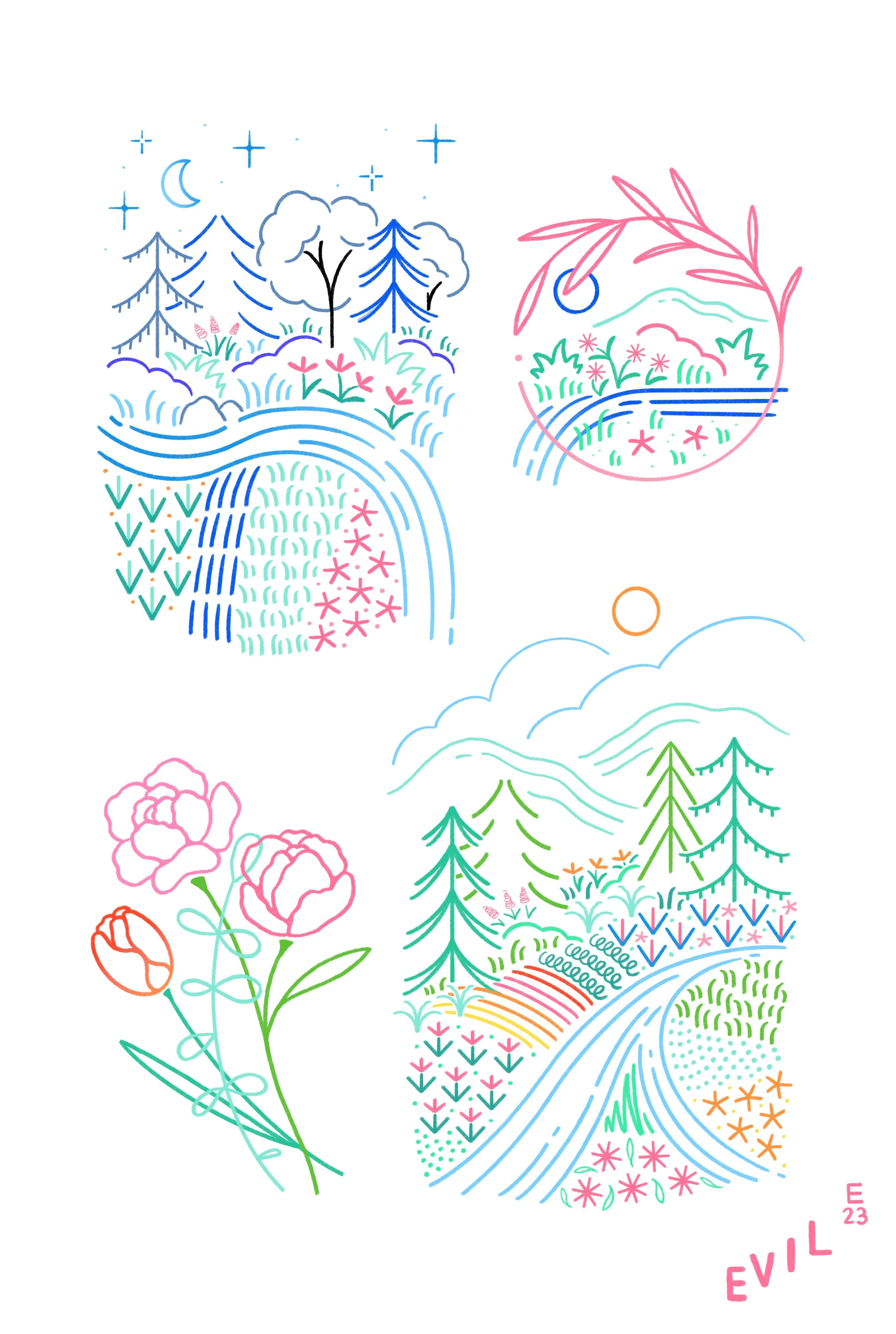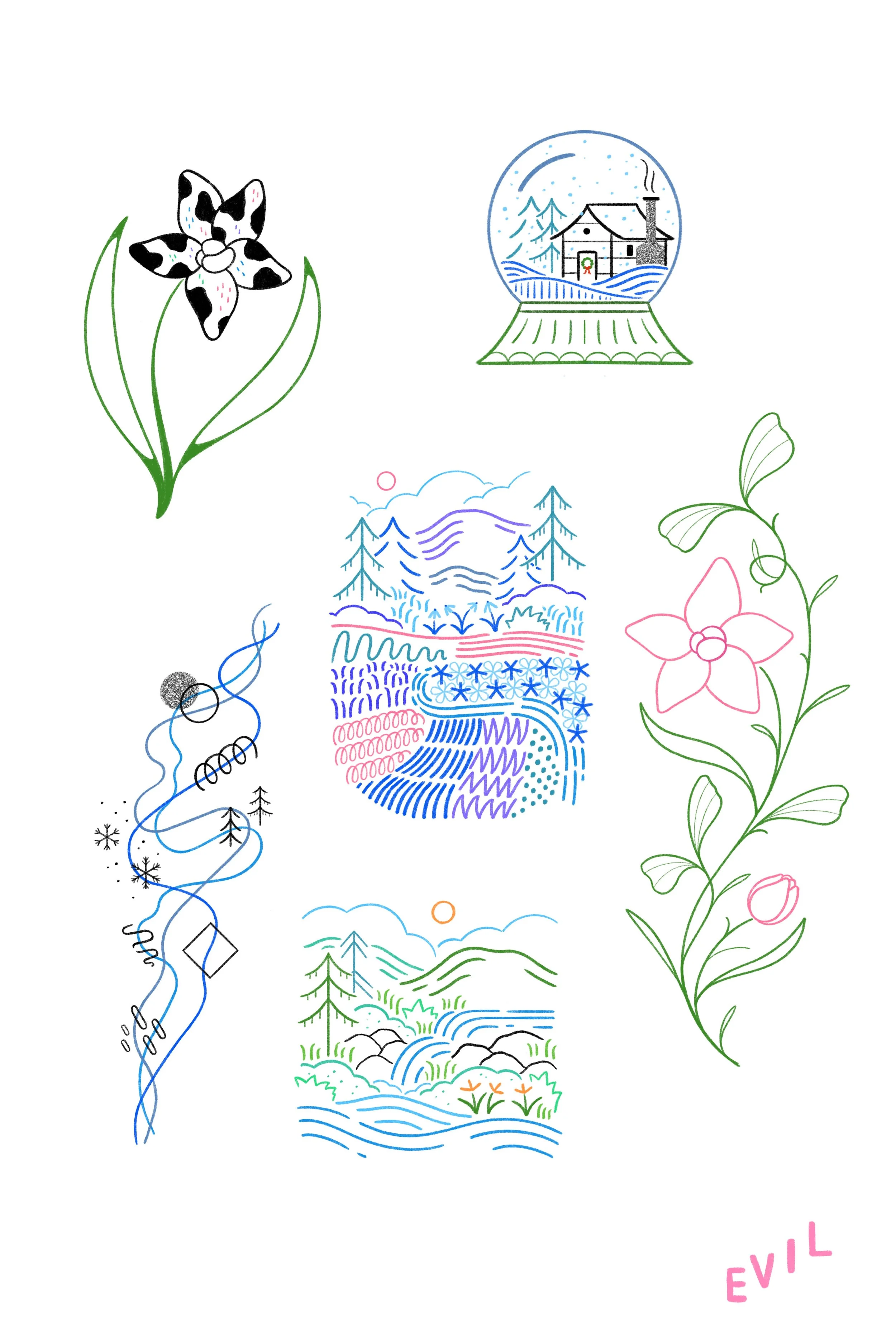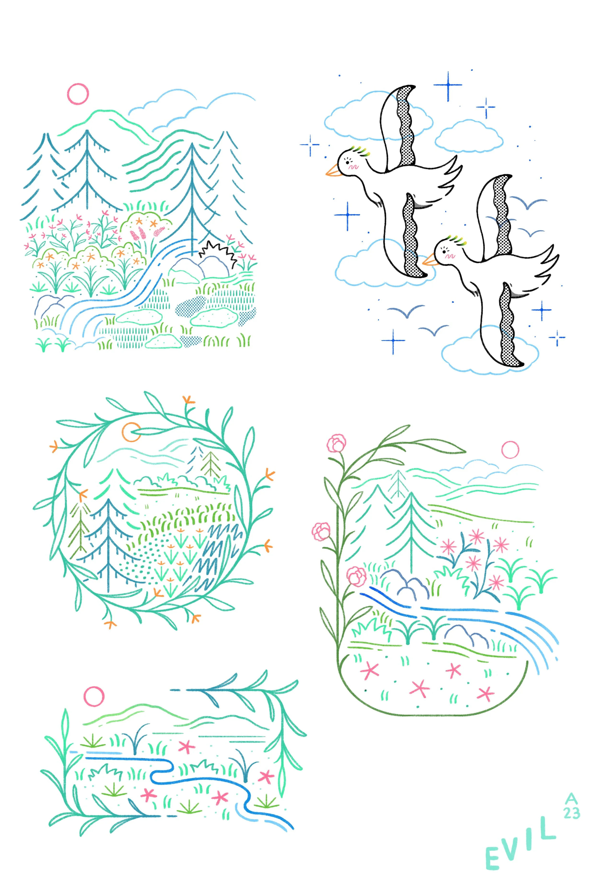 Les dessins servent de modèles. Des variations sont possibles pour la plus part des dessins. L’idée est de choisir les éléments que vous désirez dans votre projet pour construire la composition.
