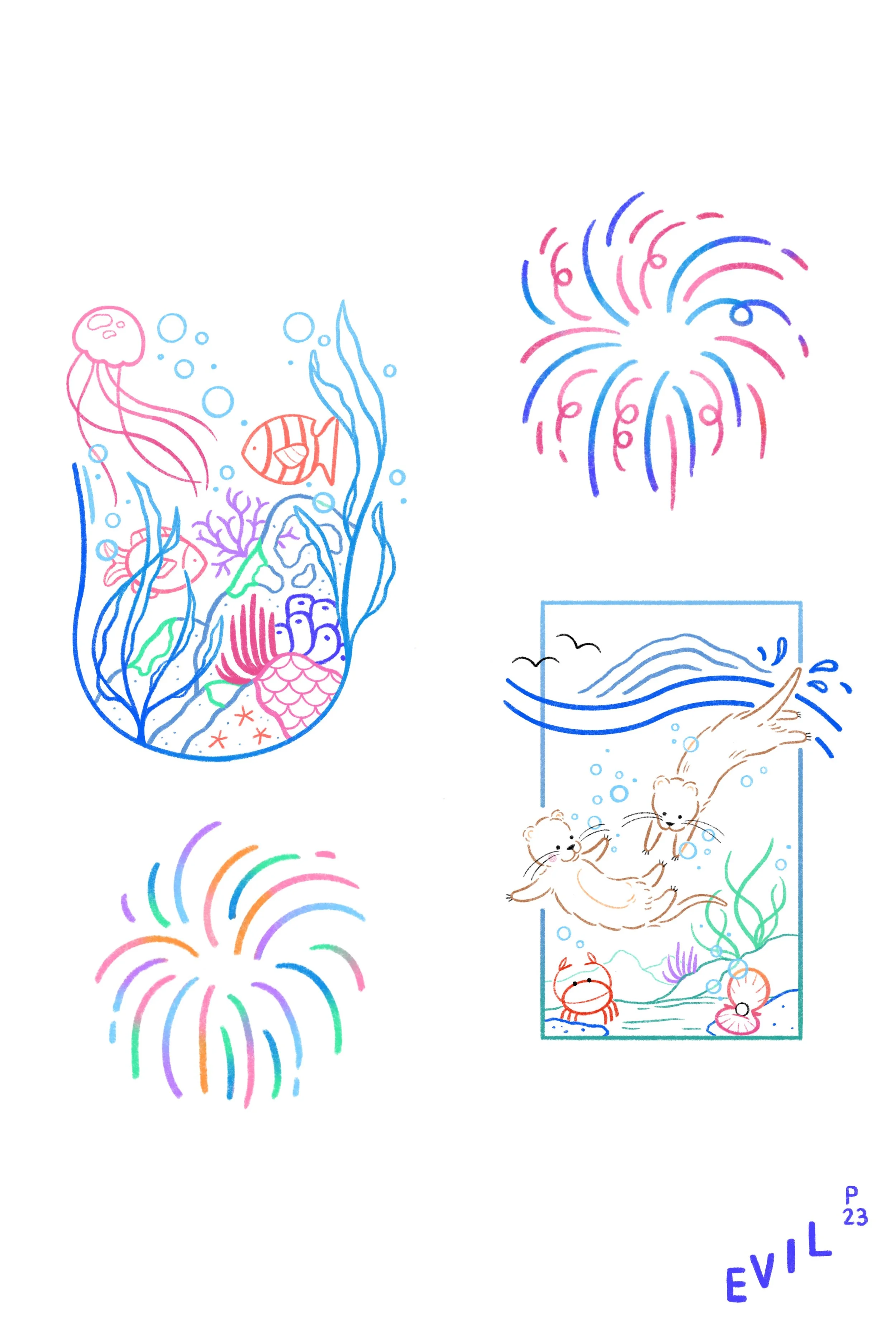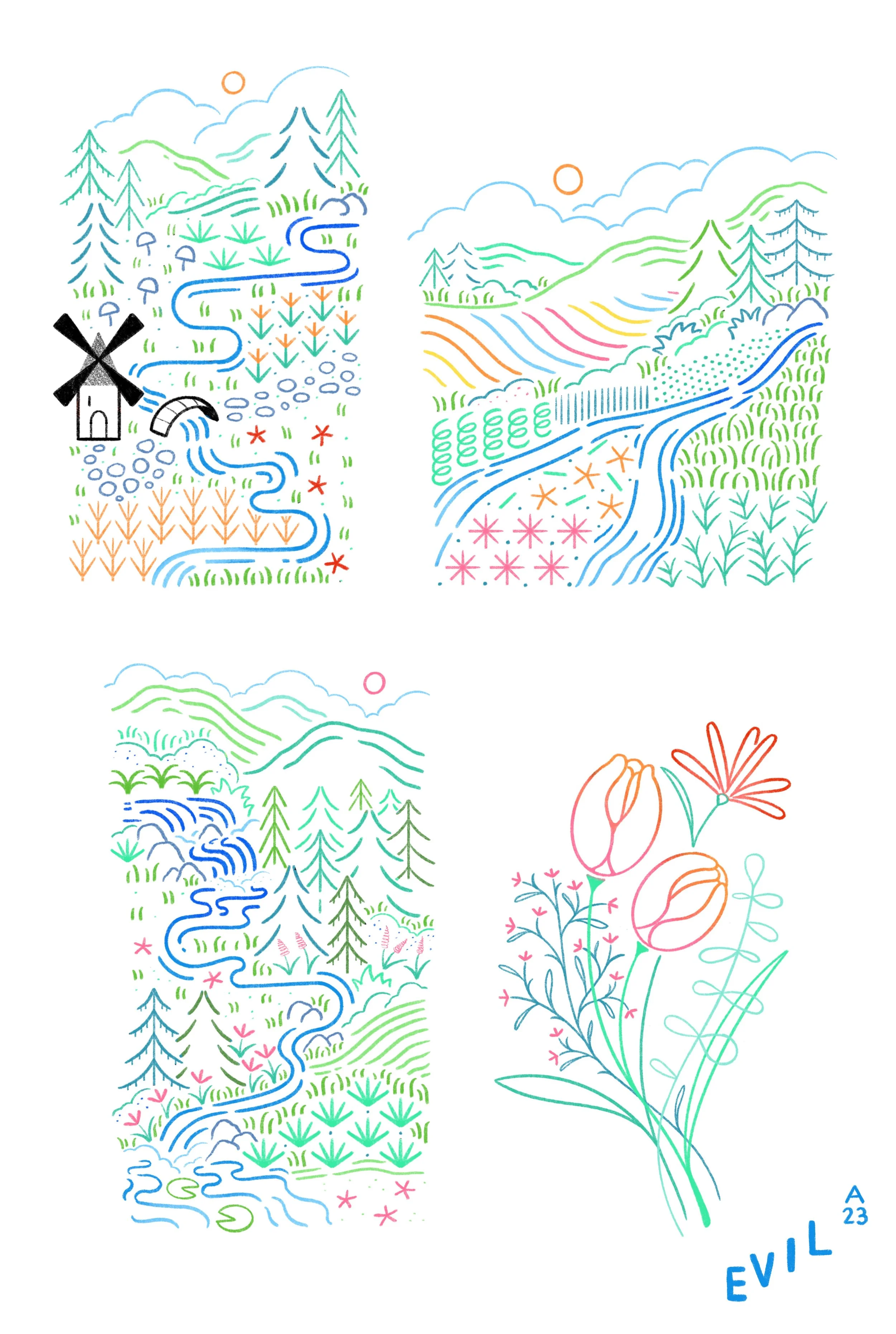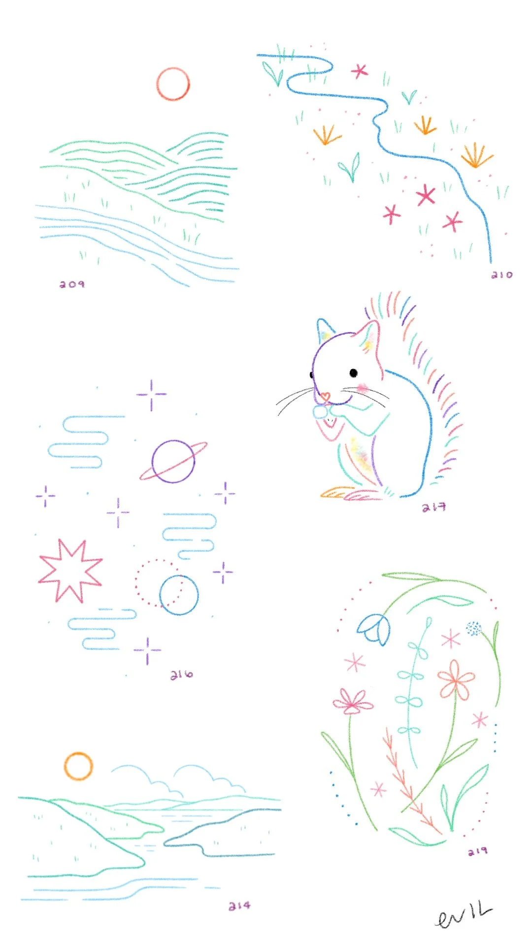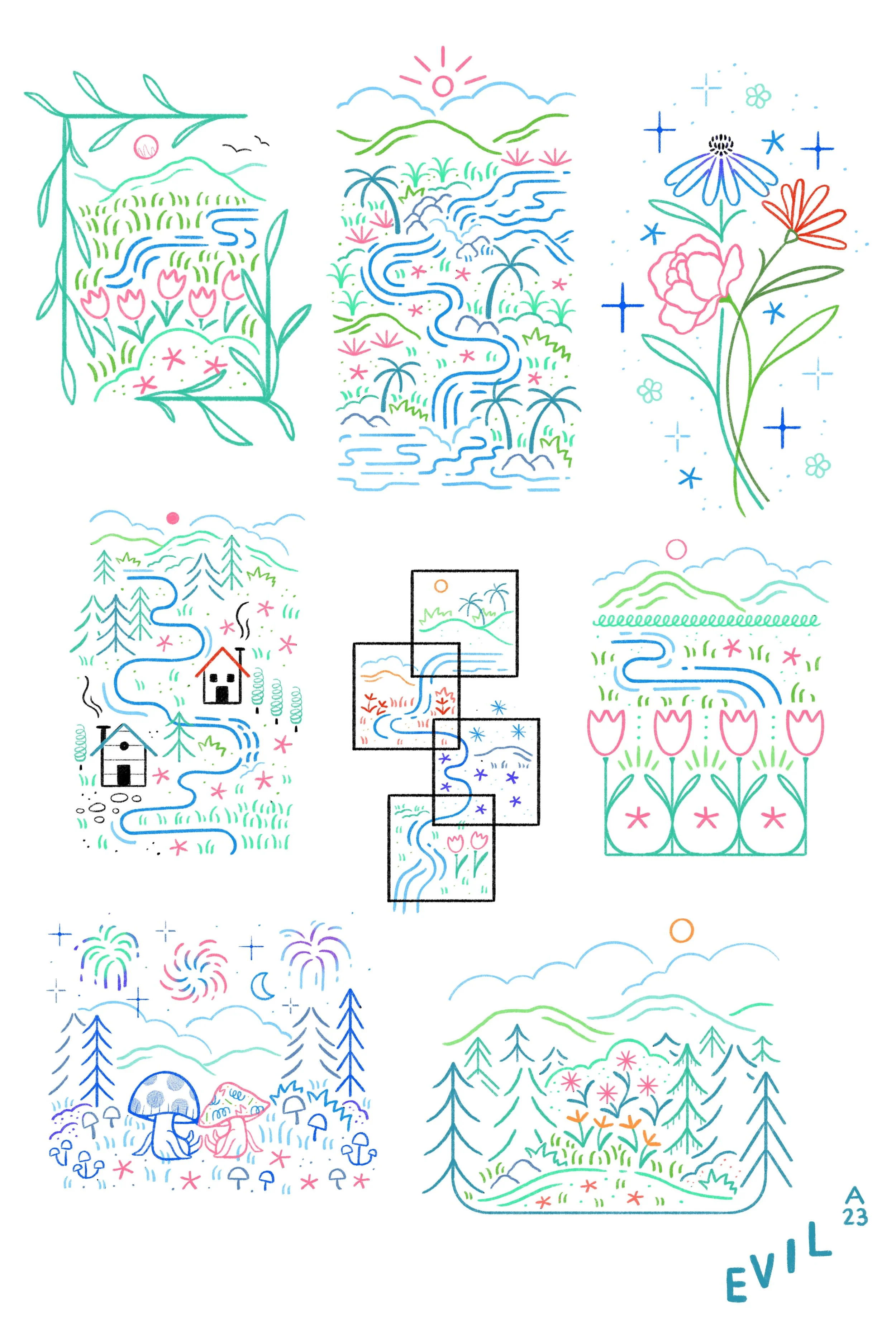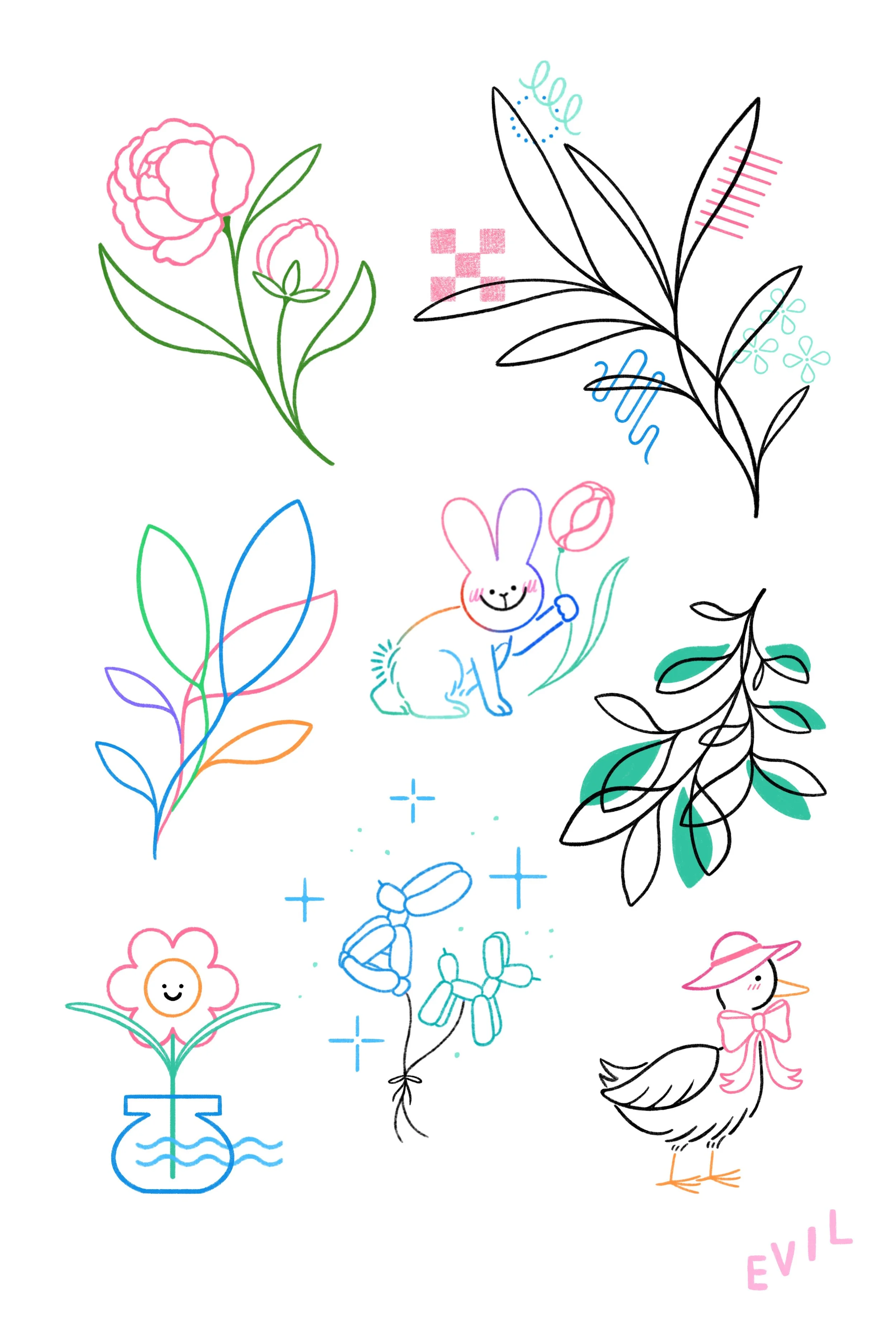 Les dessins servent de modèles. Des variations sont possibles pour la plus part des dessins. L’idée est de choisir les éléments que vous désirez dans votre projet pour construire la composition.