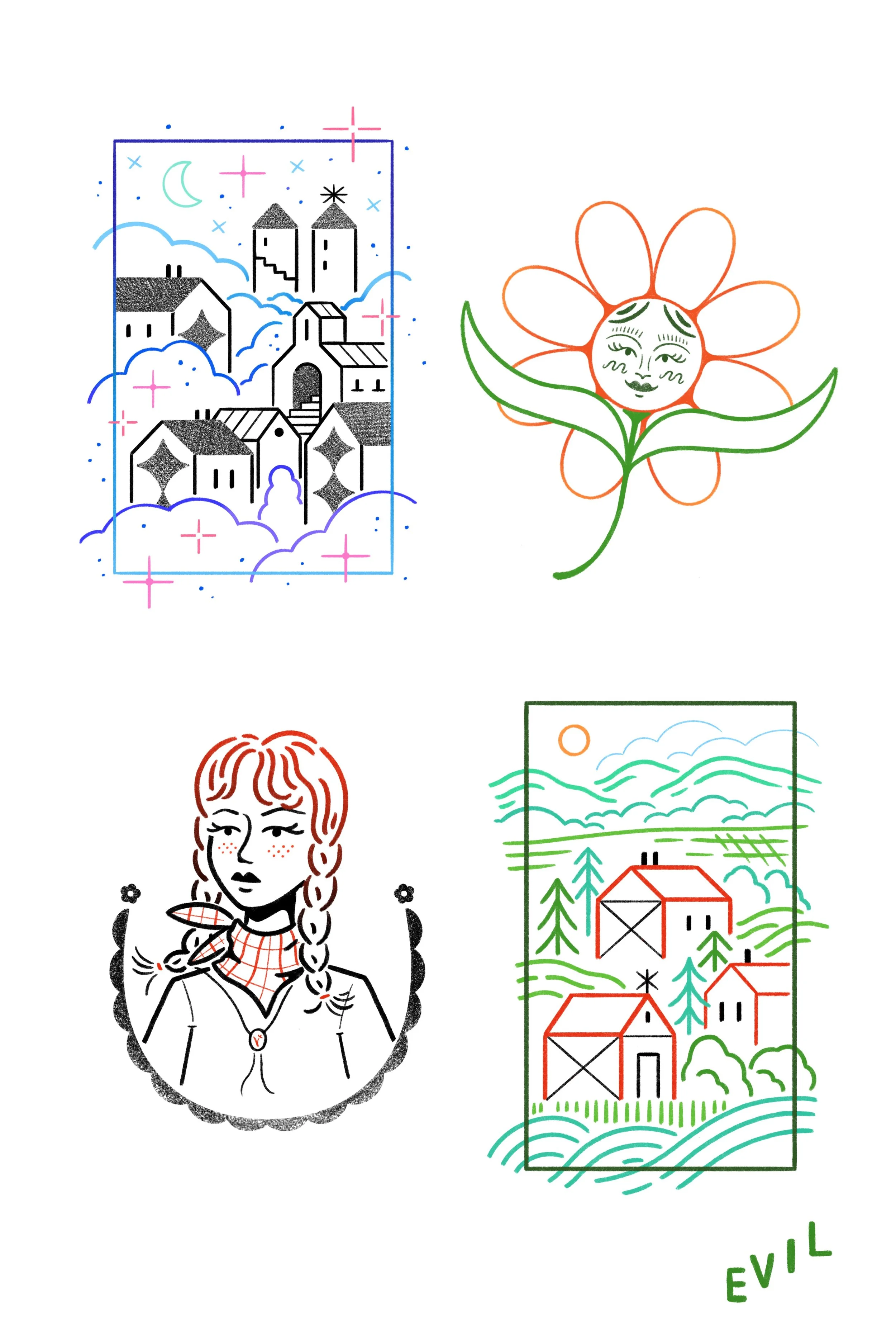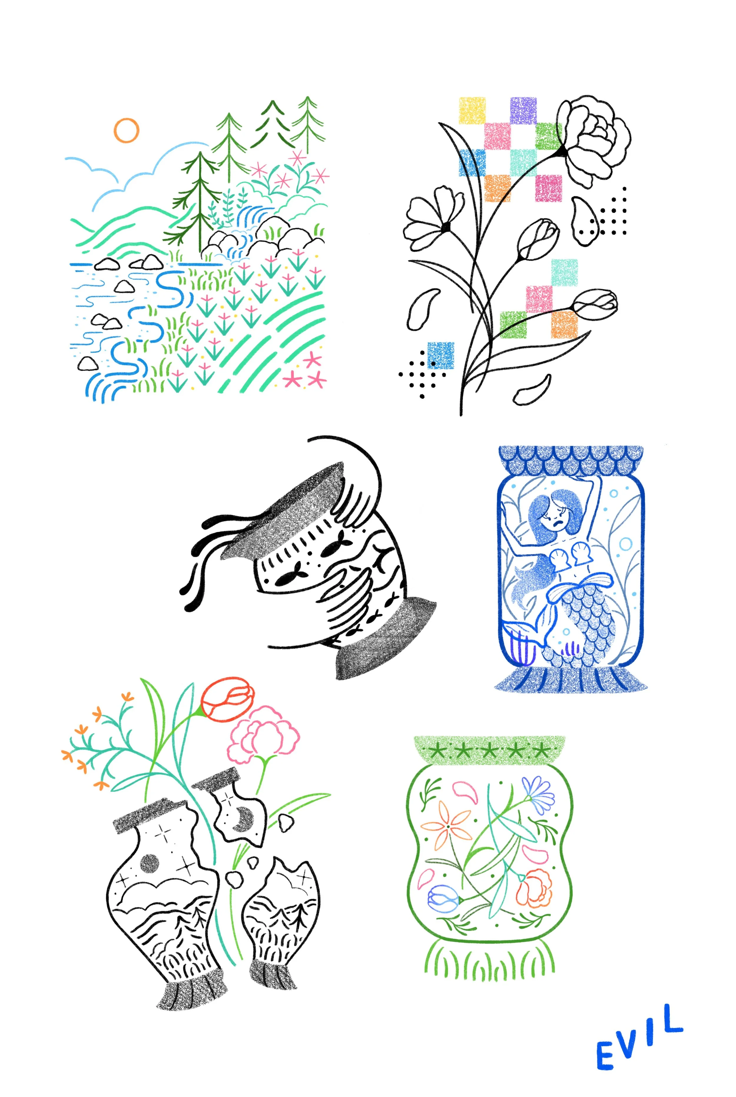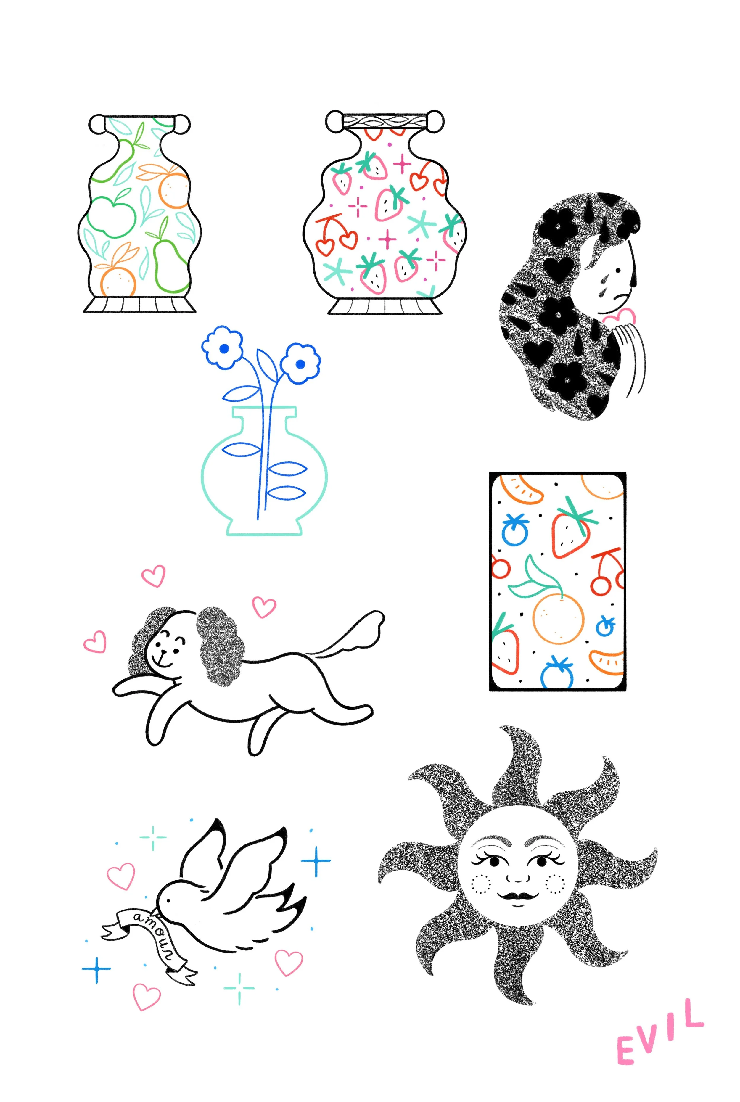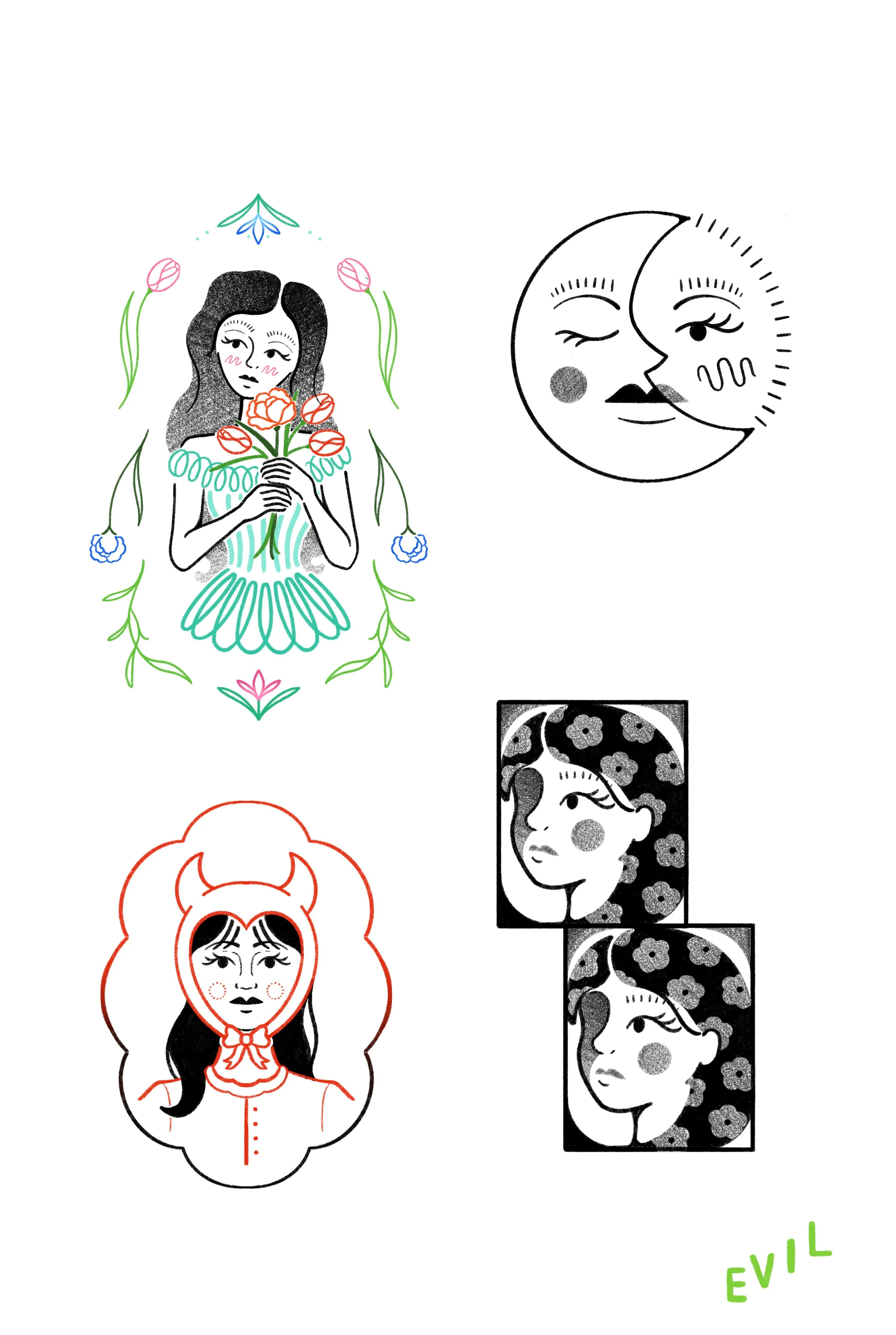 Les dessins servent de modèles. Des variations sont possibles pour la plus part des dessins. L’idée est de choisir les éléments que vous désirez dans votre projet pour construire la composition.